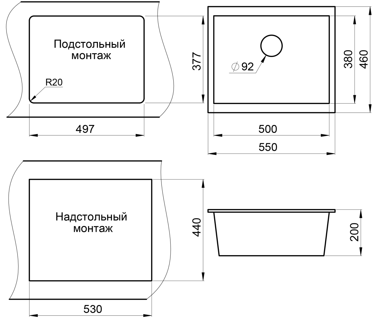 Врезная/Под столешницу/В один уровень